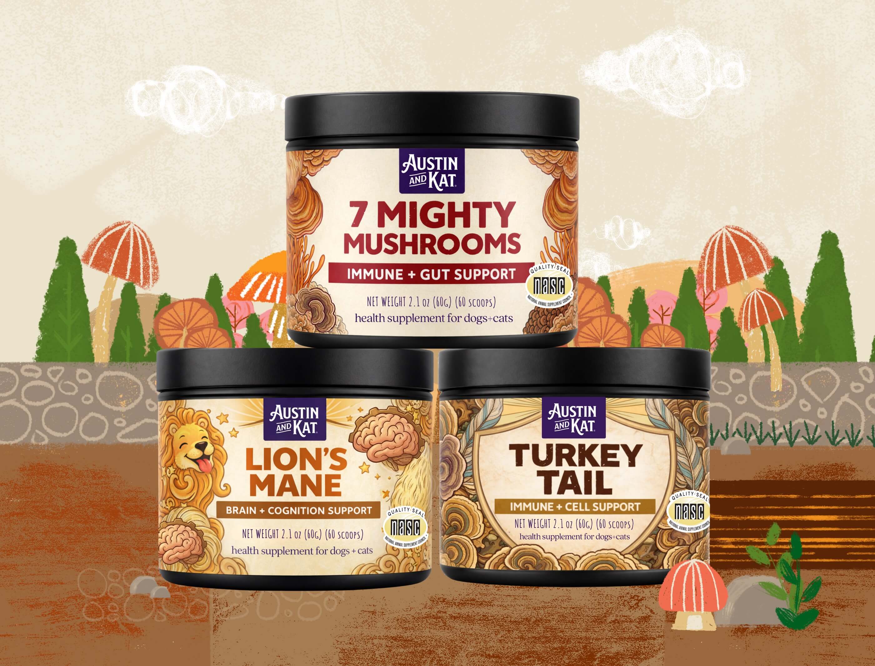 At Austin and Kat, we do things differently than the rest. Every product is formulated, sourced, and handcrafted by us — no outsourcing, no cutting corners. For pet parents, seeing the NASC Quality Seal on a product means you can trust that what’s inside is exactly what it says on the label — it’s total assurance that every formula has been carefully crafted with the same level of care and attention we’d give to our own pets.