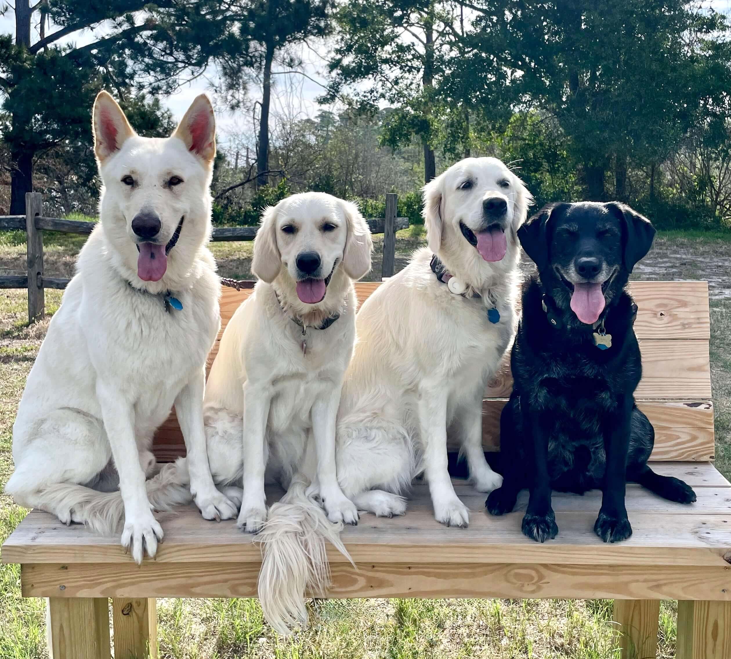 Kingsley, Blanca, Harper, and Austin posing on a bench after a round of group training